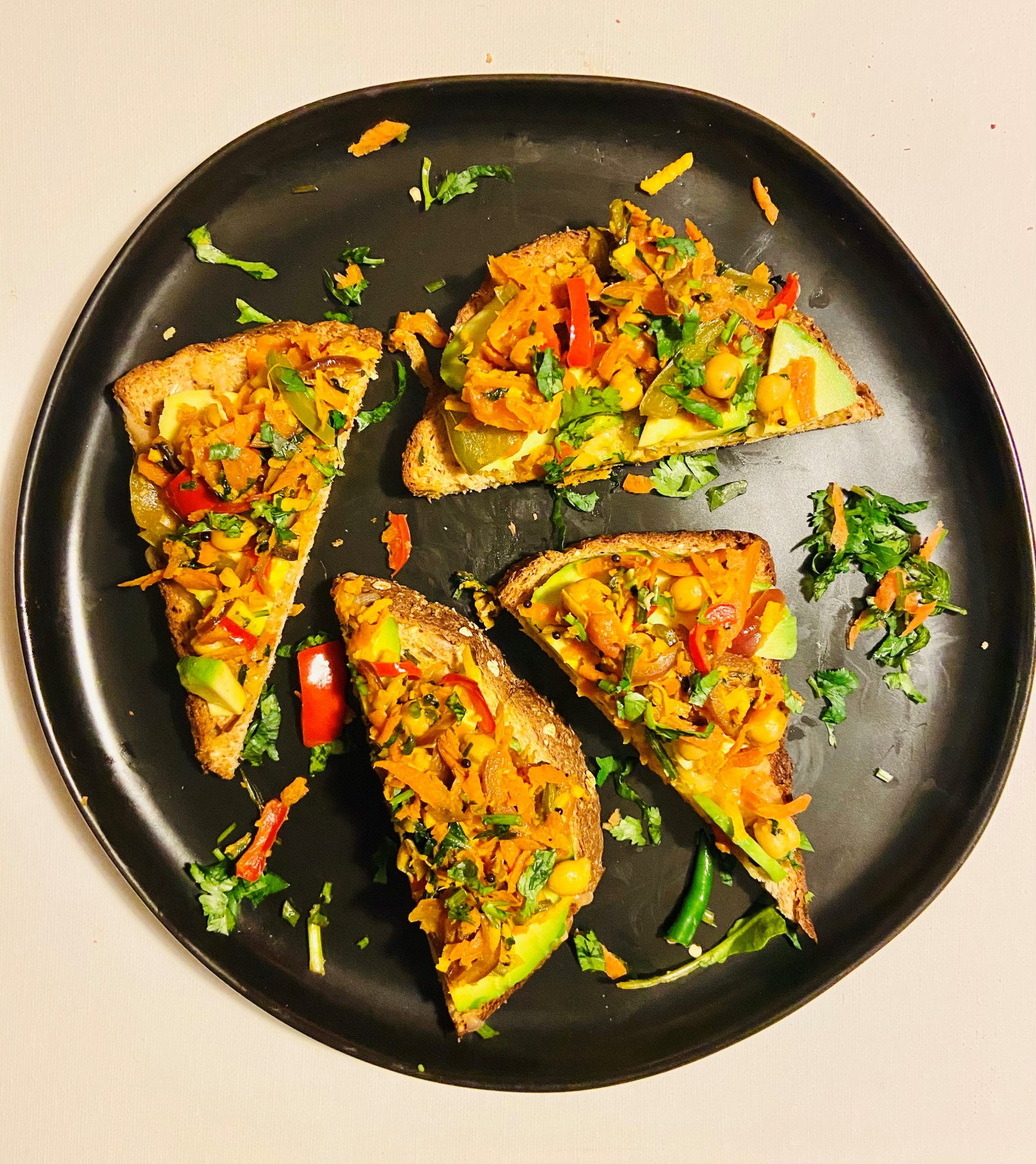 - Top each slice with ⅓ cup of masala or the desired amount.