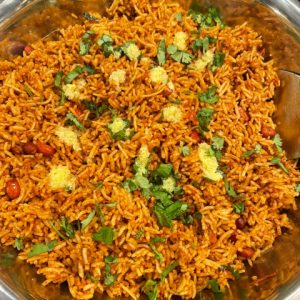 Mango rice is a popular rice dish from South India. Finely grated raw mango is spiced and cooked with traditional tempering