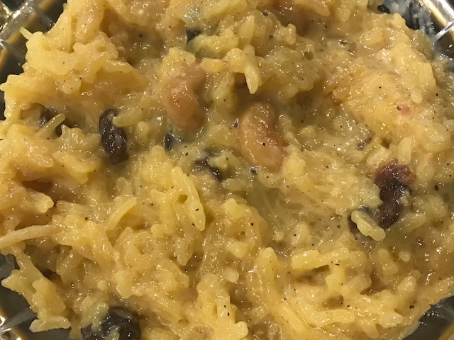 • When the rice thickens add the ghee and roasted cashews and raisins.